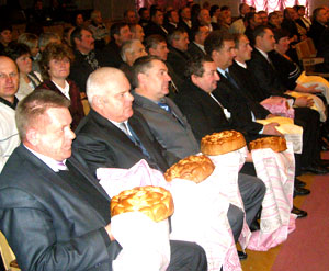 Большую часть праздничного мероприятия заняла церемония награждения победителей и призёров районного соревнования. Под аплодисменты зрительного зала Владимир Владимирович в торжественной обстановке вручил награды победителям соревнования в номинациях “Повышение урожайности, увеличение производства и продажи государству зерна” в первой группе — СПК “Ведренский” (руководитель А. М. Хацкевич), во второй — СПК “Дворец труда” (С. П. Кузьмин); “Увеличение объёмов и качества заготовки кормов” — СПК “Дворец труда”; “Увеличение производства молока” — СПК “Проземле” (В. Н. Корбан), второе место — СПК “Иванский” (В. А. Клёс), третье — СПК “Ведренский”; “Увеличение производства мяса крупного рогатого скота” — СПК “Проземле”, второе место — СПК “Иванский”, третье — СПК “Дворец труда”.