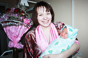 Молодая мама с трудом сдерживает свои эмоции. Для неё теперь в этом маленьком комочке — смысл жизни. Чувства, которые переживает Юлия, легко читаются на её лице. Достаточно только понаблюдать, как она смотрит на свою малышку. Радость, безграничная любовь и уже материнская тревога за родную кровинку.