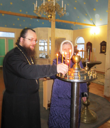Три года минуло с той поры, когда зловещее пламя уничтожило храм святого великомученика Владимира в Новолукомле. Но людей, желающих помолиться, воздать дань православной вере, в связи с печальным событием не уменьшилось. Всё это время служба велась в специальной палатке, установленной на месте сгоревшей церкви. Там всегда было многолюдно, особенно в дни православных праздников. А уже сегодня она идёт во временном храме, который был построен в течение пяти месяцев на пожертвования верующих. Как отмечает настоятель храма протоиерей Алексей Шауро, в стороне не остались предприятия и организации города. Общая площадь постройки — 150 квадратных метров. Для оформления пока используются сохранившиеся образы, но заказаны мастерам и новые, изготавливается иконо-стас. В ближайшее время ожидается прибытие в Новолукомль архиерея Оршанского и Витебского Дмитрия. Служба с участием владыки будет официальным открытием храма. А впереди у православных Новолукомля — ещё одно начинание. Весной планируется заложить постоянный каменный храм.