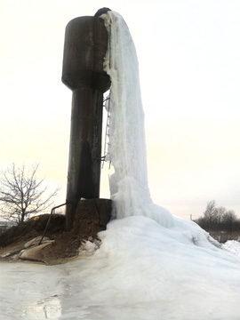Однако то, что вы, уважаемые читатели, видите на снимке, свидетельствует о другом. Вот в таком виде корреспондент районной газеты запечатлел водонапорную башню на ферме в д. Круглица  КУСХП “Краснолукское” несколько дней назад. Судя по величине образовавшейся глыбы, вода, переполнив  башню, вытекала не час и не два. А может,  и не одни сутки (выливалась  она и в день командировки). Мало того, что впустую тратилась вода как природное богатство, на её производство расходовалась  же электроэнергия, за которую сельхозпредприятию надо платить. Такая вот бережливость…