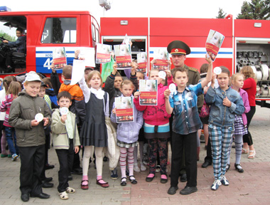 Участники акции получили также её логотипы и наглядно-изобразительную продукцию противопожарной направленности.