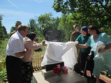 Первой к собравшимся на церемонии односельчанам, гостям из окрестных деревень, среди которых люди разных возрастов, обратилась Антонина Александровна Стельмах, по инициативе и стараниями которой была проделана огромная работа по увековечению памяти о жителях деревни, не вернувшихся с той проклятой войны. На памятнике — тридцать две фамилии. В искренних словах женщины — благодарность всем, кто откликнулся на её предложение, поддержал морально, внёс деньги, кто помог благоустроить территорию, установить памятник, и пожелание, чтобы военное лихолетье никогда не повторилось. Мы должны передавать правду о войне из поколения в поколение, чтобы на нашей земле больше не громыхали взрывы, не гибли от пуль люди. За мир надо бороться, нельзя допустить, чтобы у нас повторились события Украины.