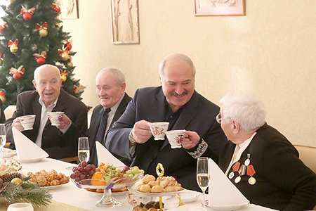 Пожилые люди поблагодарили Александра Лукашенко за заботу. Президент сказал, что не нужно благодарить, поскольку это его работа. Он заверил, что государство и впредь будет заботиться о стариках. Ветераны поблагодарили также Президента за арбузы, которые были переданы ранее с выращенного на территории президентской резиденции урожая. В непринужденной беседе глава государства интересовался у ветеранов их мнением по различным вопросам. Как оказалось, ветераны в курсе всех событий, которые происходят в стране и мире, они следят за политикой. В свободное время смотрят телевизор и занимаются любимыми увлечениями. В завершение ветераны вместе с Александром Лукашенко исполнили знаменитую “Катюшу” и другие песни.