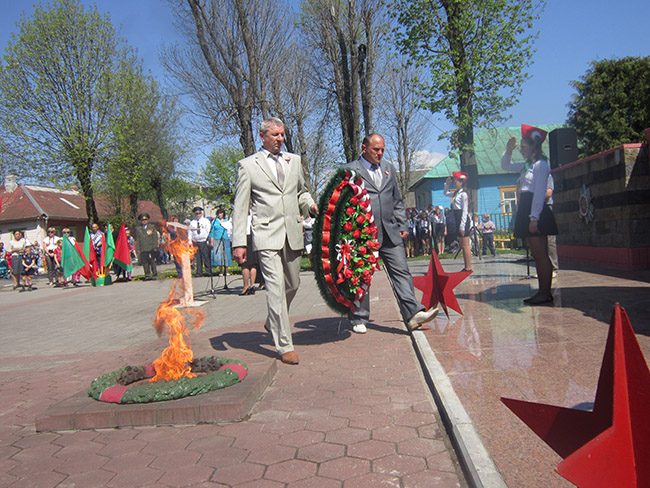 День Победы — это день триумфа и величия нашего народа, отметил исполняющий обязанности председателя райисполкома М. И. Мильчанин. В тяжелейшей борьбе наш человек выстоял и победил. А могло ли быть иначе, когда встать на защиту Отечества стремился каждый? Низкий поклон солдатам минувшей войны, всем, кто ковал Победу над врагом, по крупицам восстанавливал страну в послевоенное время. Мы в неоплатном долгу перед теми, кто не щадил себя ради жизни на земле. Наша искренняя благодарность ветеранам за то, что они и сегодня в строю, занимают активную гражданскую позицию.