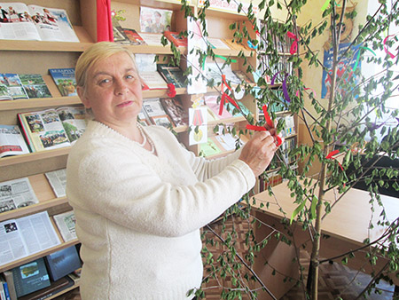 Накануне 71-й годовщины Великой Победы библиотекарь Галина Ломач решила пойти дальше. Опять же, в тесном сотрудничестве со школой открыли символическое “Дерево памяти”. В библиотечном фойе установили берёзку, на которую любой желающий может повязать ленточку. Тем самым отдать дань уважения подвигу народа, своих дедушек и бабушек. В первый же день на дереве появилось несколько десятков лент.