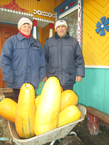 Рассказали супруги, что праздность, ничегонеделание — не для них. Всегда находится занятие не в доме, так во дворе, в сарае или на огороде. Видимо, поэтому и порядок у них во всём. И урожай всегда хороший. А вот кабачки в этом году уродили всем на зависть — весом не меньше 15 килограммов каждый, да и в длину не подкачали. Хозяева и сами удивляются такому их росту. “Кабачки, как кабанчики. На одной плети, было, “зацепилось” 13 штук”, — с восхищением делятся они. Секретов выращивания никаких нет. Всё, как всегда.
