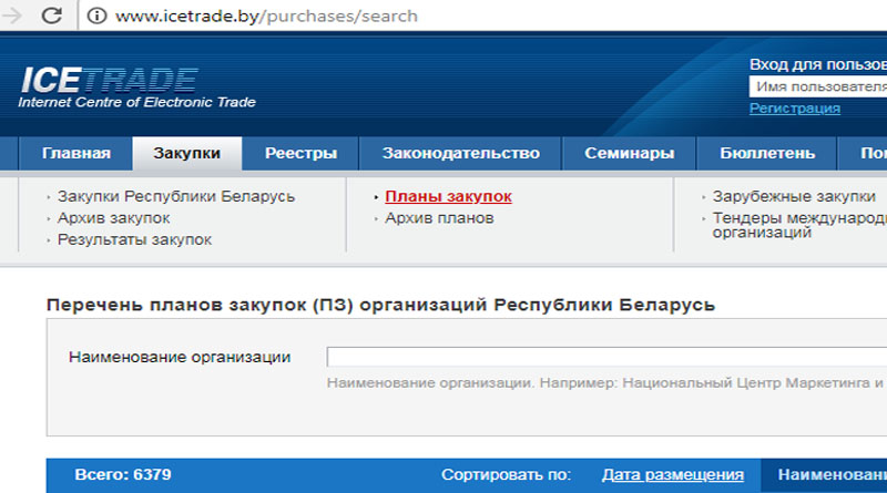 Законодательством установлено, что организациями, получателями бюджетных средств и (или) средств государственных внебюджетных фондов для приобретения товаров (работ, услуг) и осуществляющими такое приобретение, должен быть размещен годовой план государственных закупок до 8 марта текущего года на официальном сайте, определенном Советом Министров Республики Беларусь (http://www.icetrade.by).