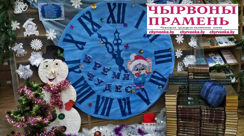В преддверии Нового года Чашникская центральная районная библиотека приглашает всех желающих заглянуть в читальный зал, где появилась волшебная фотозона с огромными сказочными часами с синим циферблатом, милым снеговиком и символом года – мышкой. Здесь можно уютно устроиться в «умном кресле» из книг и загадать желание под Новый год, которое обязательно сбудется. И еще – можно погадать по энциклопедии. Ну а фото в праздничной фотозоне получится, несомненно, ярким, необычным и красочным!