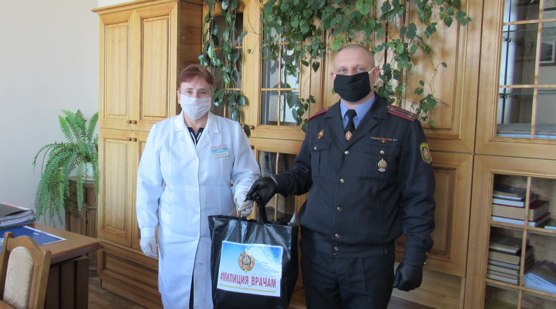 С 15 апреля по инициативе сотрудников милиции и офицерских собраний органов внутренних дел и внутренних войск Республики Беларусь стартовала благотворительная акция «Милиция – врачам». К марафону добрых дел присоединились и сотрудники Чашникского РОВД. Собранные средства потратили на приобретение и передачу в Чашникскую больницу таких необходимых сегодня средств защиты. Медицинские маски, перчатки, дезинфицирующие средства в учреждении здравоохранения приняли с благодарностью. Такая поддержка и внимание всегда придают сил.