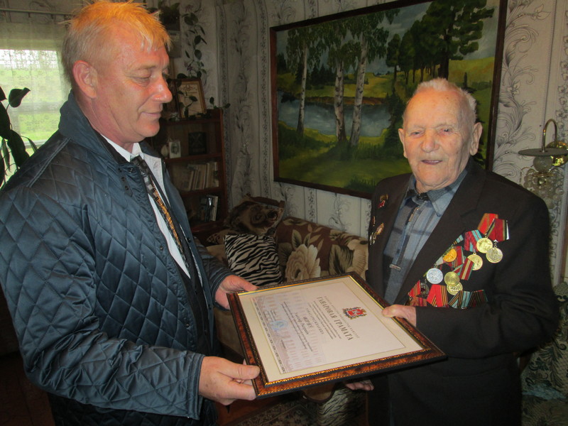 Накануне праздника председатель районного Совета депутатов А. Д. Косов тепло и сердечно от районной власти и себя лично поздравил Владимира Григорьевича с юбилейным Днём Победы, поблагодарил за мужество и героизм, проявленные в годы Великой Отечественной. Александр Дмитриевич вручил ветерану Поздравительный адрес Президента Республики Беларусь А. Г. Лукашенко, Почётную грамоту Витебского областного исполнительного комитета за активное участие в ветеранском движении, значительный личный вклад в патриотическое воспитание подрастающего поколения, а также подарок.