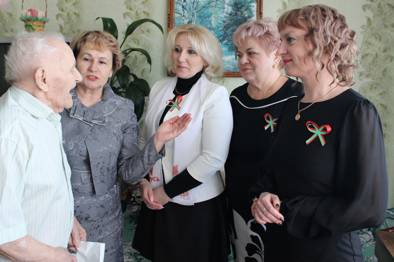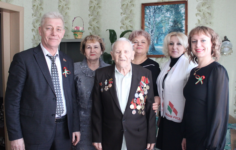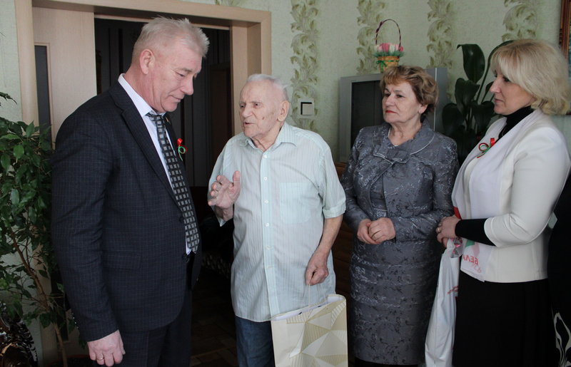 ?Председатель Чашникского районного Совета депутатов А. Д. Косов, заместитель начальника отдела идеологической работы, культуры и по делам молодёжи С. А. Латыголец, председатель Чашникской районной организации Белорусского общественного объединения ветеранов В. В. Коваленко, представитель Чашникской районной организации РОО “Белая Русь” Е. А. Казинец поздравили с 95-летием ветерана Великой Отечественной войны Владимира Григорьевича Андреева. В адрес юбиляра звучали поздравления и слова благодарности за мирное небо. И мы присоединяемся к поздравлениям. С юбилеем, Владимир Григорьевич!