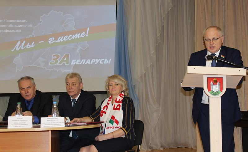 В работе заседания приняли участие председатель Чашникского райисполкома Леонид Плешко, Член Совета Республики, председатель Витебского областного объединения профсоюзов Юрий Деркач, председатель Чашникского районного Совета депутатов Александр Косов, заместитель председателя Чашникского райисполкома Инна Сыровченко, а также представители первичных профсоюзных организаций предприятий района.