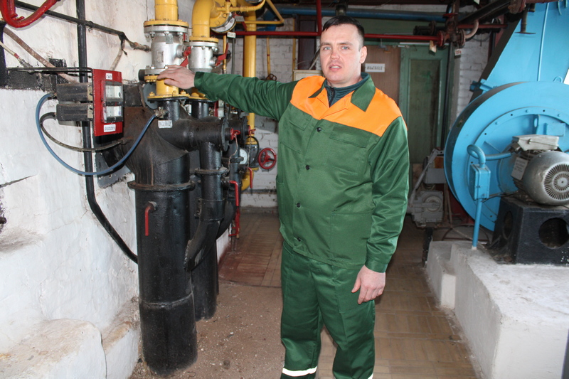 На котельной №3 трудится оператором Александр Викторович Битяй. В его обязанности входит обслуживание водогрейных и паровых котлов. Отвечает за безопасную и безаварийную эксплуатацию оборудования. В зоне обслуживания Александра Викторовича 5 котлов центральной котельной, 1411 квартир, 40 частных домов и 40 предприятий.