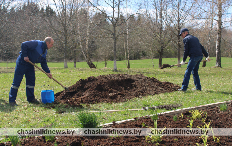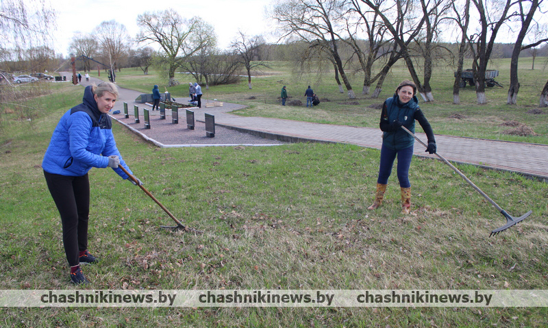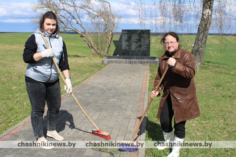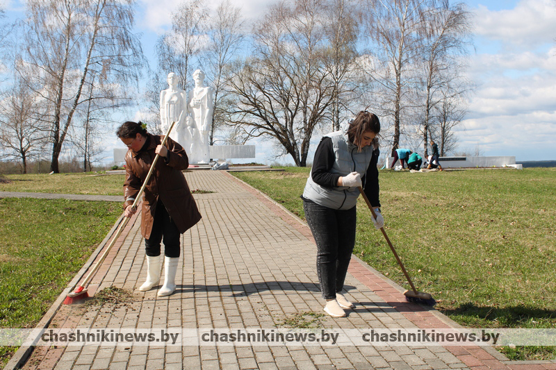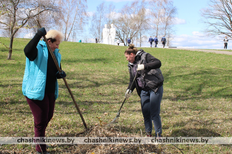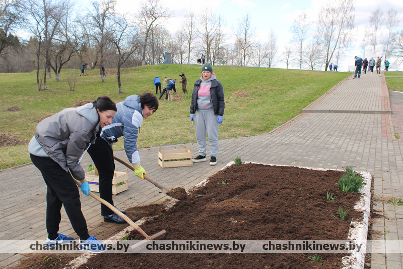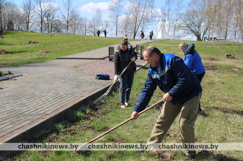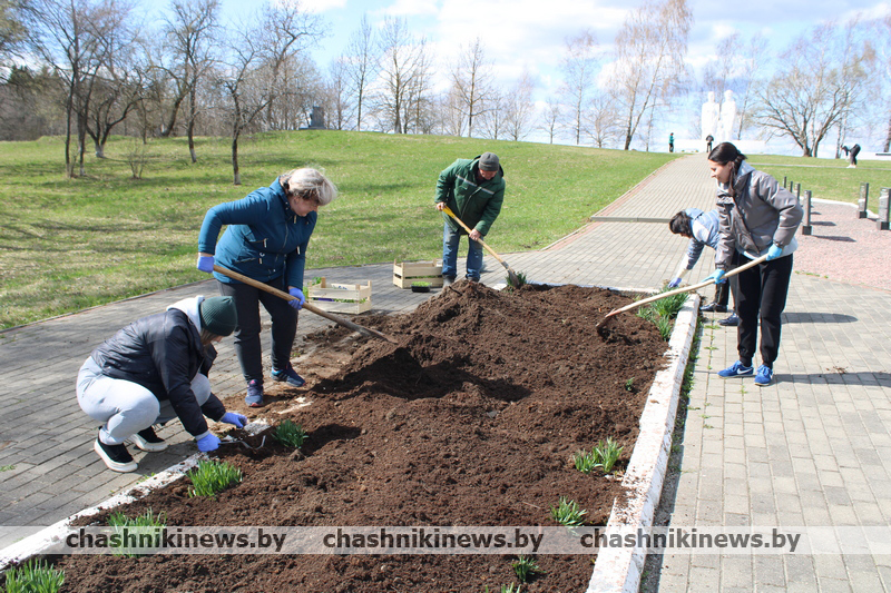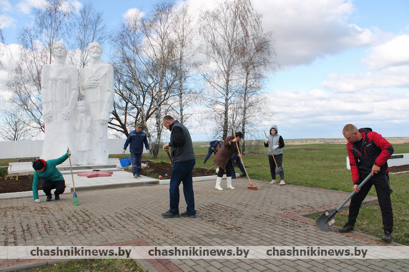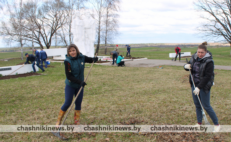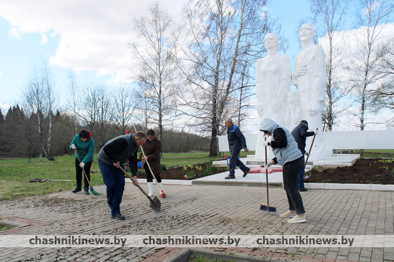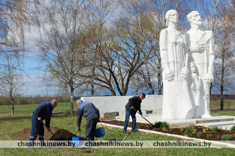 Работники КУП «Жилищно-коммунального хозяйства» г. Чашники Чашникского района» организовали доставку земли для обновления клумб. Участники трудовой акции очищали территорию от опавших веток, сухих деревьев, прошлогодней листвы и пожухлой травы, подновляли клумбы, которые обрели совершенно новый вид. Высаживали цветы, совсем скоро они будет радовать глаз и украшать это памятное место. Белили деревья, очищали и подметали дорожки, ведущие к мемориальному комплексу.