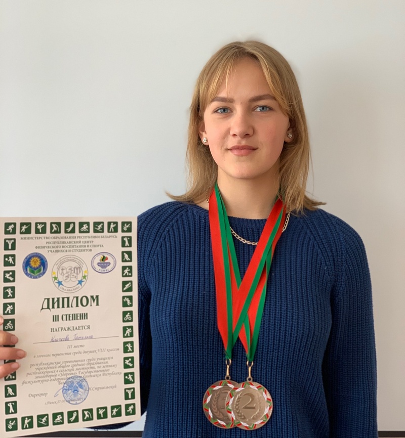 Девятиклассница Кащинской ДССШ Татьяна Клачкова уже четвертый год подряд выступает на соревнованиях по многоборью и как всегда результативно. Юная спортсменка входит в состав областной команды. Спартакиада позволяет сделать первые шаги к профессиональному спорту и достижению высоких результатов, а также воспитывает волю к победе, закаляет характер, формирует крепкий фундамент для здоровья. В программе состязаний для школьниц её возрастной категории были плавание, прыжок в длину, стрельба, сгибание и разгибание рук в упоре лежа (отжимание), бег на 30 и 1000 метров. В результате многодневной упорной и тяжелой борьбы Татьяна показала хорошую техническую и тактическую подготовку, заняла третье место в личном первенстве в своей возрастной группе. Команда Витебской области заняла второе место.