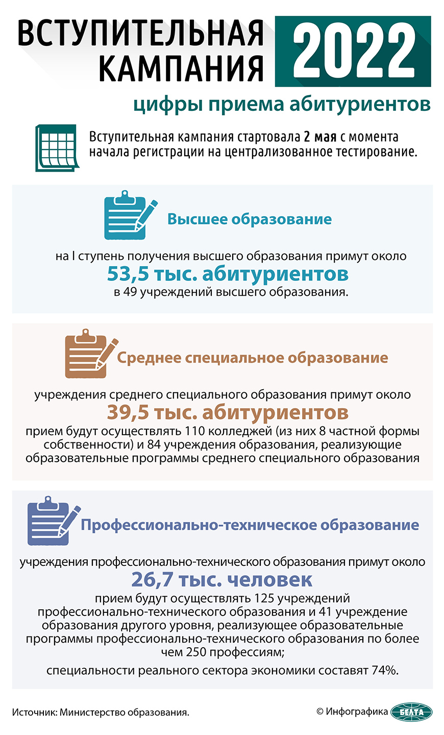 учреждения среднего специального образования примут около 39,5 тыс. абитуриентов;