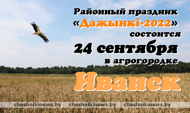 В 11.00 стартует праздничное шествие «Адзіны шлях да хлеба». Затем участники мероприятия установят QR-табличку на братской могиле аг. Иванск, примут участие в возложении цветов к воинскому захоронению. Также организаторы приглашают всех на торжественное мероприятие «Дажынкі-2022», в рамках которого состоится конкурс караваев среди сельскохозяйственных организаций.