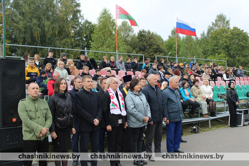 Церемония открытия турнира началась торжественным шествием футбольных команд. После построения в честь стран-участниц прозвучали государственные гимны. Поприветствовал футболистов председатель Чашникского райисполкома Александр Быков. Он отметил, что проведение открытого Кубка Чашникского района по футболу уже стало доброй традицией, долгожданным праздником, где юные футболисты демонстрируют командный дух, ловкость, силу, умение бороться и побеждать. Целью турнира является не только популяризация футбола и выявление победителей, но и развитие дружественных отношений между Беларусью и Россией. Символично проведение турнира в преддверии государственного праздника – Дня народного единства. Ведь в единстве народов – наша сила. Александр Быков пожелал участникам честной игры и заслуженных наград, а нашей команде продолжать прославлять чашникскую землю. Среди почетных гостей заместитель главы администрации по экономике и местному самоуправлению Пыталовского района Псковской области Светлана Тюрева. «Мы рады сегодня присутствовать на белорусской земле, на таком замечательном турнире, который уже стал традиционным,» – отметила гостья. Также она пожелала всем участникам мероприятия новых знакомств, впечатлений, честной игры и побед. В церемонии открытия приняли участие председатель Чашникского районного Совета депутатов Александр Косов, заместитель председателя райисполкома Инна Сыровченко, председатель Новолукомльского горисполкома Виталий Фадеев, руководители предприятий, организаций и учреждений.