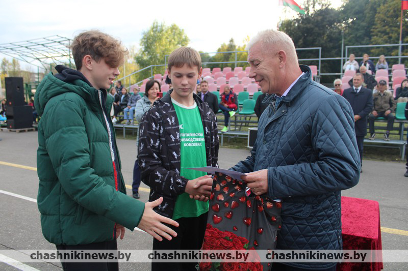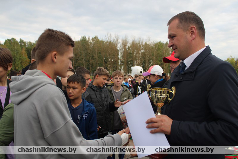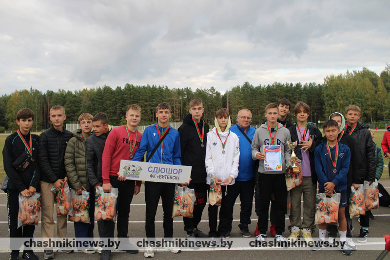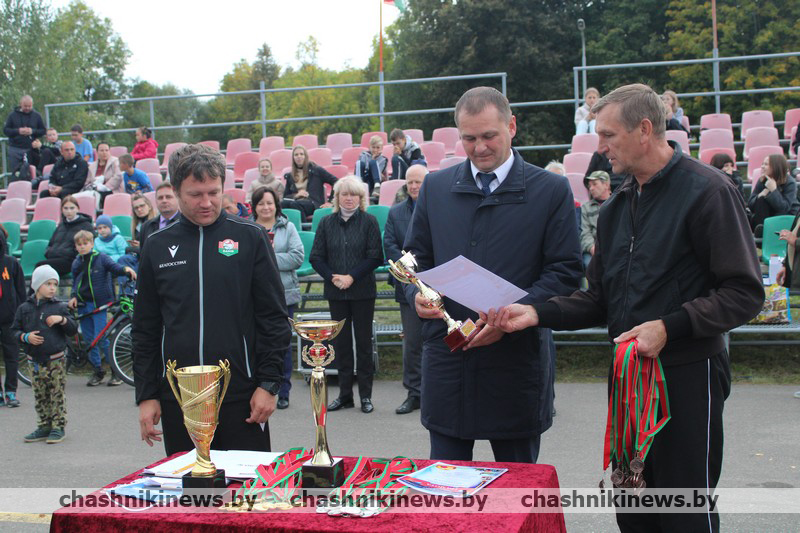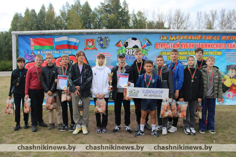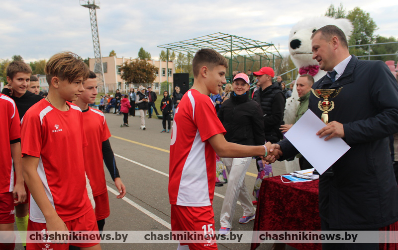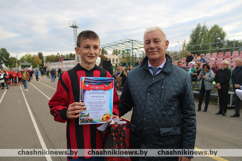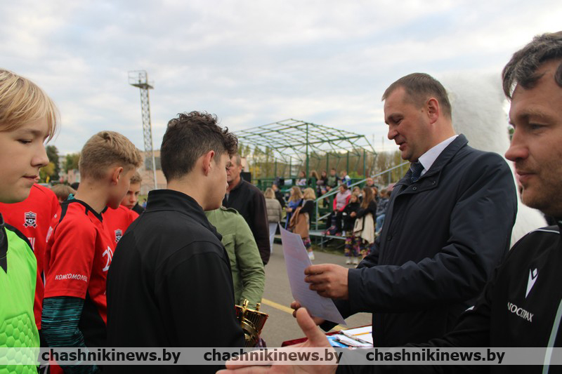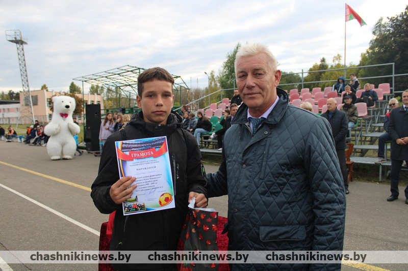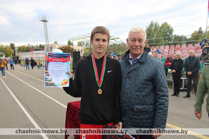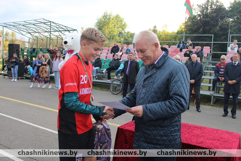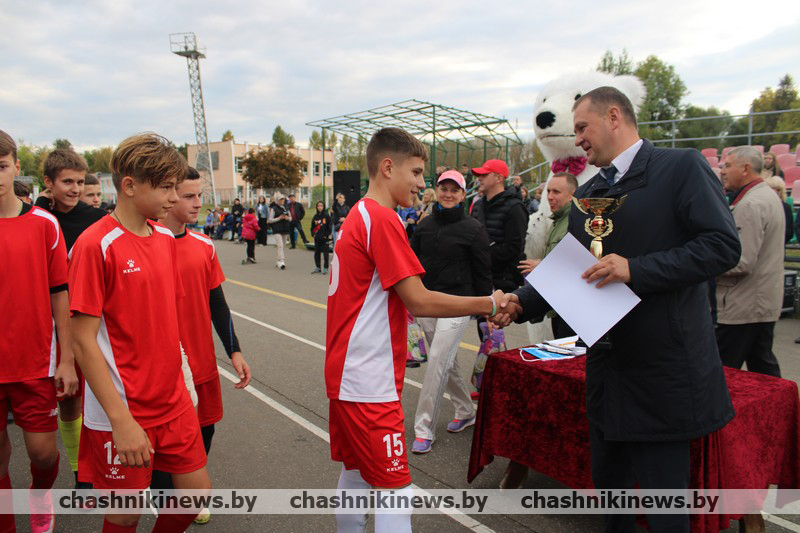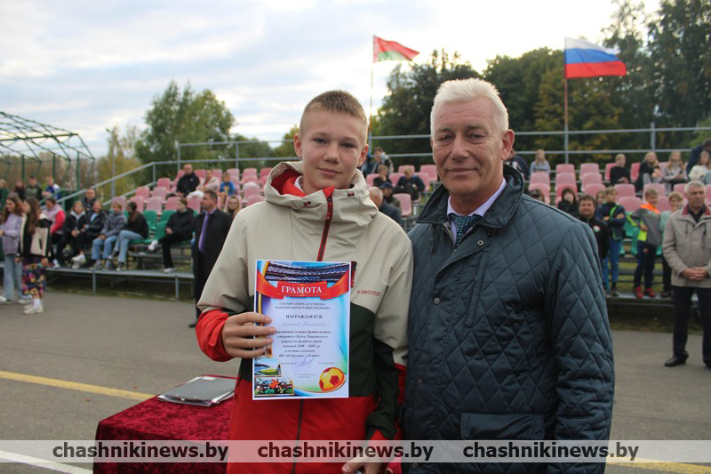 Отрадно отметить, что футболисты РФСК «Скина» Чашникского района вышли в финал. В борьбе за Кубок во втором тайме на 15 минуте забили гол. И стали абсолютными победителями турнира. Награды победители принимали во время церемонии закрытия из рук председателя Чашникского райисполкома Александра Быкова. Второе место в соревновании досталось команде СДЮШОР «Комсомолец» г. Витебска, а третье – СДЮШОР ФК «Витебск». Команды награждены кубками, каждому участнику вручены медали, подарки от организаторов. Александр Косов наградил особенно отличившихся игроков из каждой команды, подарки для них подготовил сектор спорта и туризма Чашникского райисполкома.