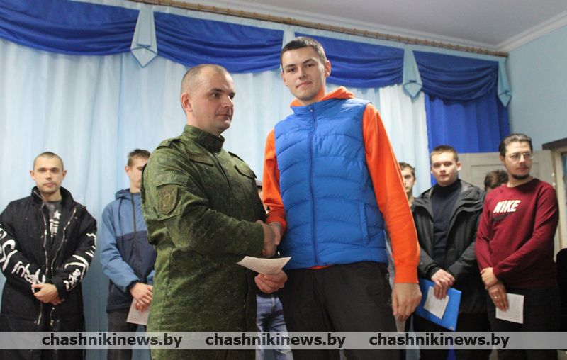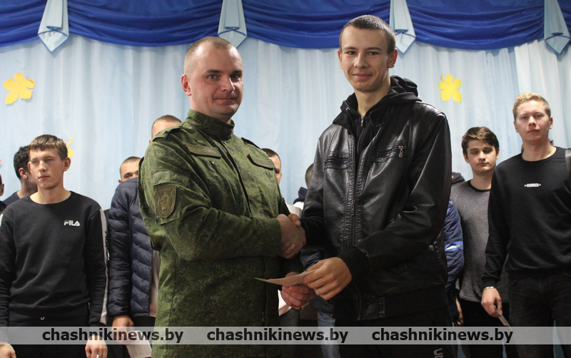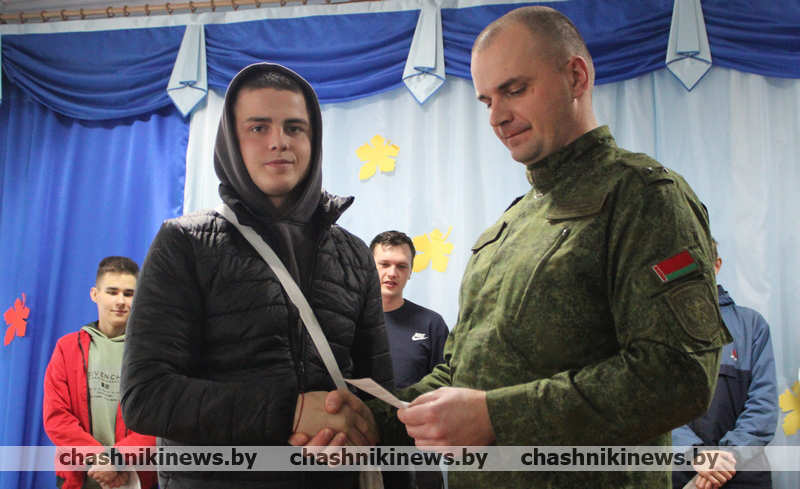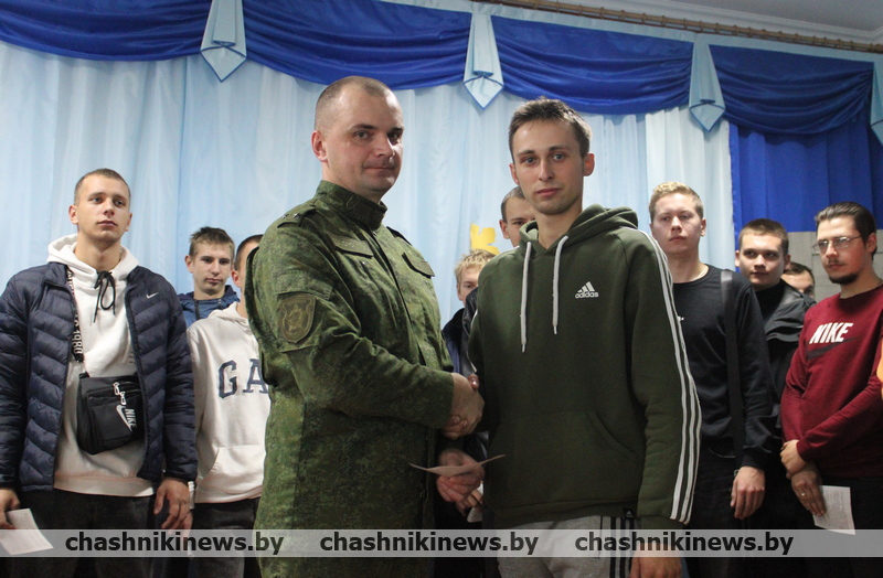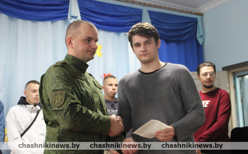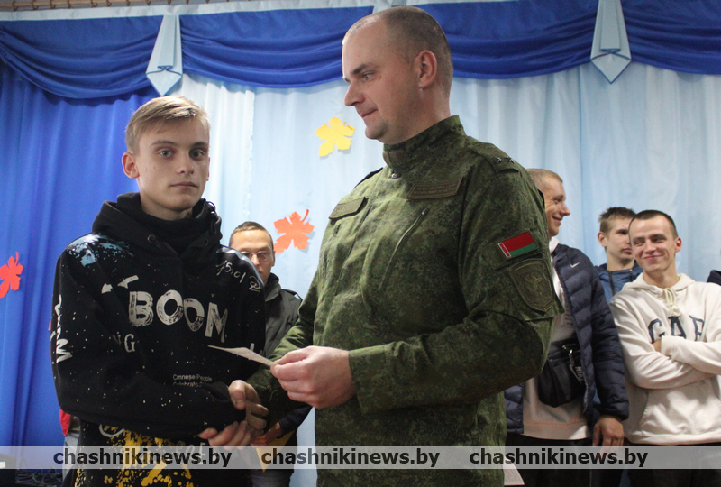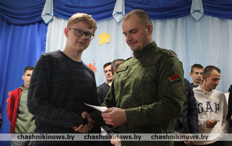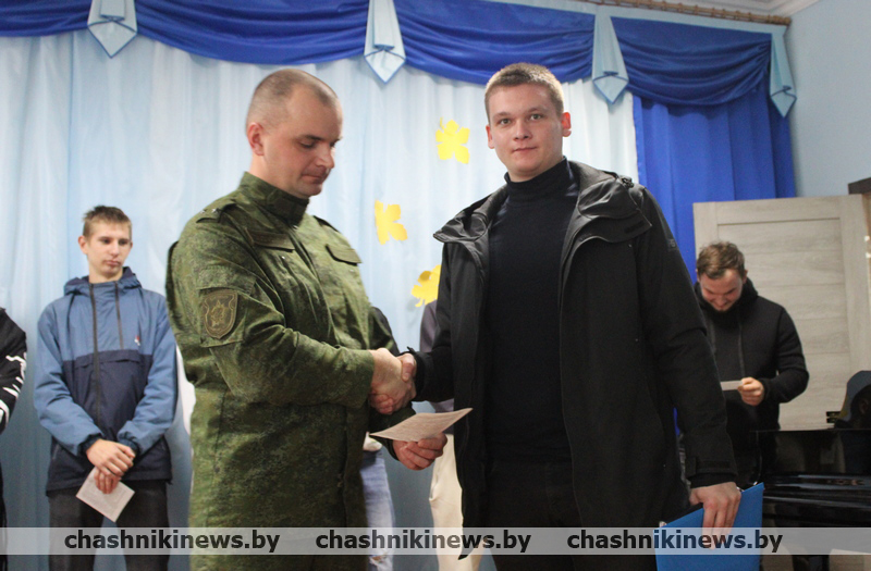 Военный комиссар Чашникского района Витебской области подполковник Игорь Полубинский открыл торжественное мероприятие, зачитал Указ Президента Республики Беларусь о призыве граждан на срочную военную службу, службу в резерве. После чего обратился к присутствующим со словами напутствия. Отметив, что военная служба – настоящая школа мужества и патриотизма, становления молодых людей как настоящих граждан нашей страны.