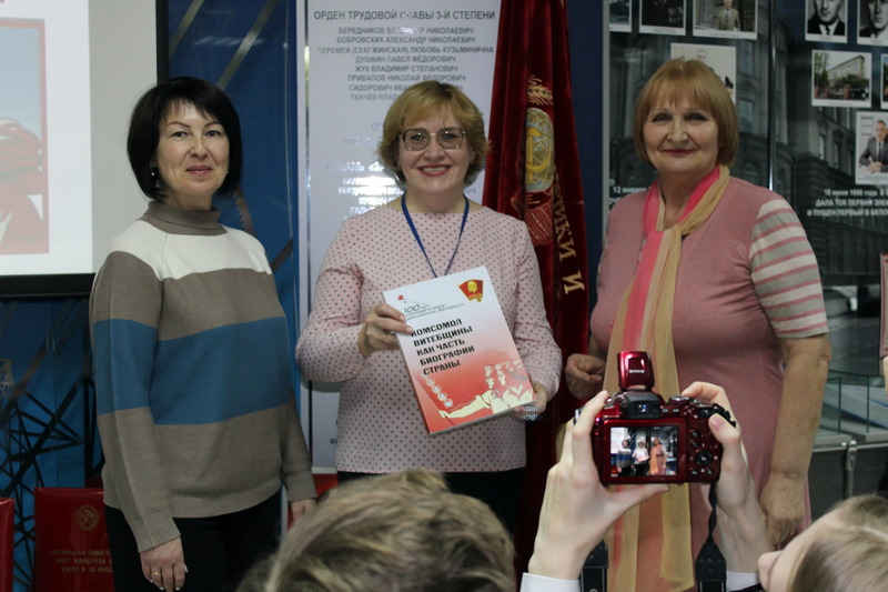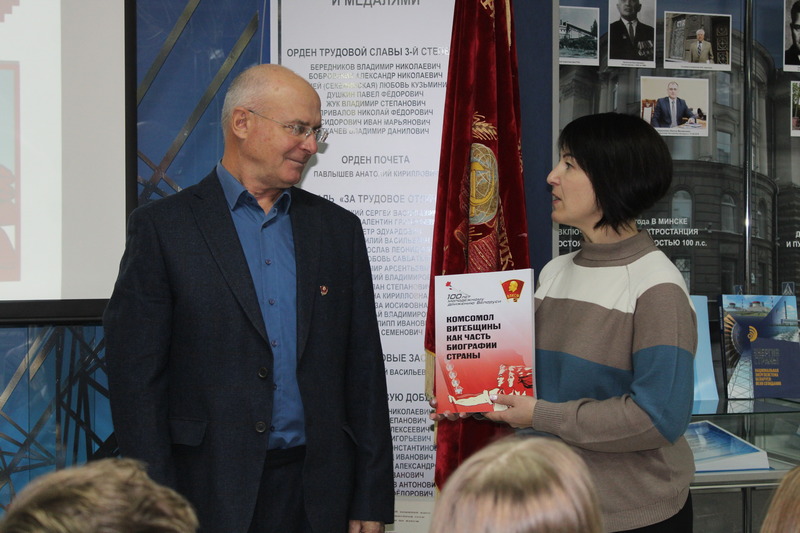 Первые руководители комсомольской организации Геннадий Астапенко, Федор Салтанович и Анатолий Савицкий с гордостью рассказывали молодому пополнению филиала о стройке, достижениях в труде, спорте, проведении туристических слетов. Встреча ознаменована еще одним важным событием: в этот день в музей была передана книга «Комсомол Витебщины как часть биографии страны», которая издана к 100-летию молодежного движения Беларуси. Фонд музея пополнило знамя управления строительства Лукомльской ГРЭС.