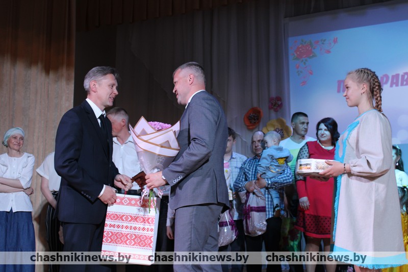 Во время торжества директор ПУ “Чашникигаз” Леонид Рудак вручил подарки многодетной семье Ильи и Татьяны Кукурузяк.