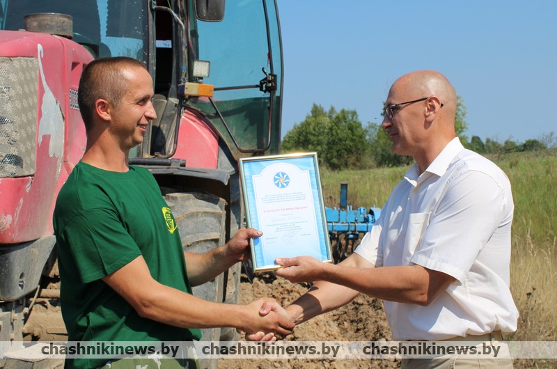 Председатель профсоюза работников МПКБП Алексей Юсиков вручил награды лучшим комбайнерам – Николаю Шарику (ОАО «Проземле-Агро»), Алексею Овсянко (КУСХП «Семена»), водители Михаилу Дубинцу (ОАО «Чашникский агросервис»), Андрею Филатову (ОАО «Проземле-Агро»).