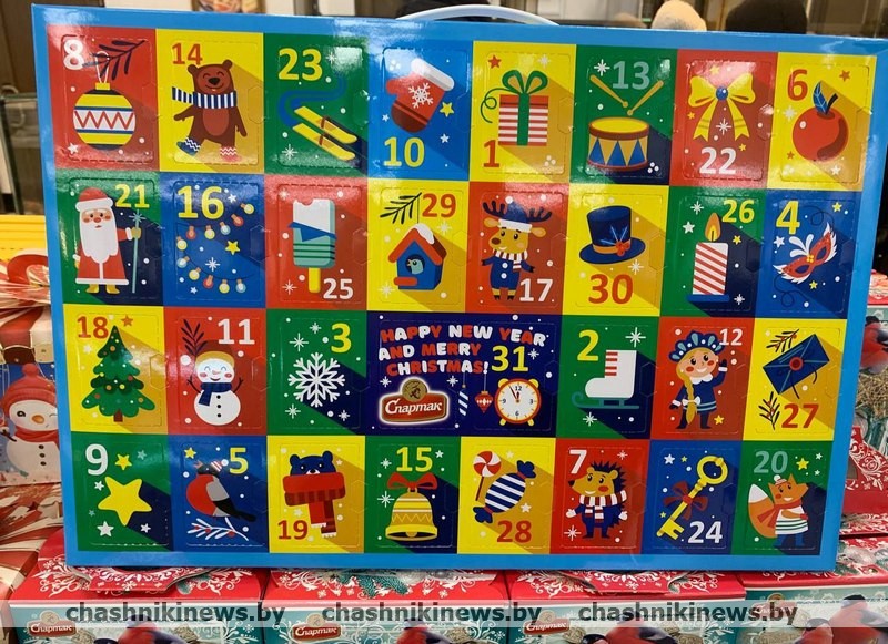 И последнее. В этом году на полках магазинов были замечены адвент-календари от белорусских производителей. От трендов решили не отставать кондитерская фабрика «Спартак» и фирма Luxvisage.