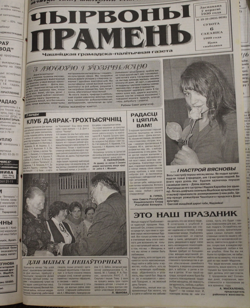 За годы существования “Чырвонки” менялись стили и жанры, используемые корреспондентами, несколько раз кардинально обновлялся дизайн газеты. А в Международный женский день на страницах по-прежнему истории прекрасной половины человечества: судьбы, достижения, мечты.