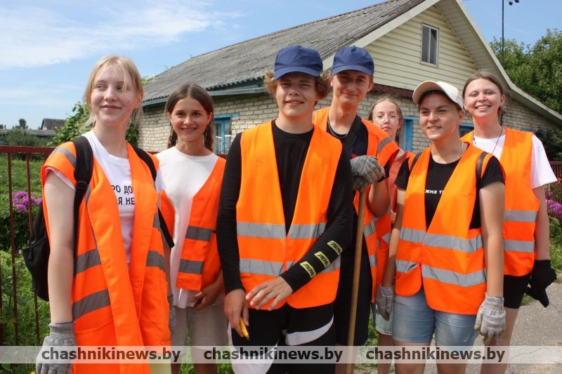 Работаем на улице Строительной, где ребята дружно «разбираются» с сорной растительностью на тротуарах вдоль улицы. Разговариваем с командиром отряда Дарьей Завадко, выпускницей средней школы №1 г. Чашники имени Героя Советского Союза Е. Ф. Ивановского. Сейчас она – студентка Витебского филиала Белорусской государственной академии связи. Еще в школьные годы Дарья отличалась активной гражданской позицией, постоянно была участницей различных мероприятий. Вот и сейчас, во время каникул, решила провести время с пользой.