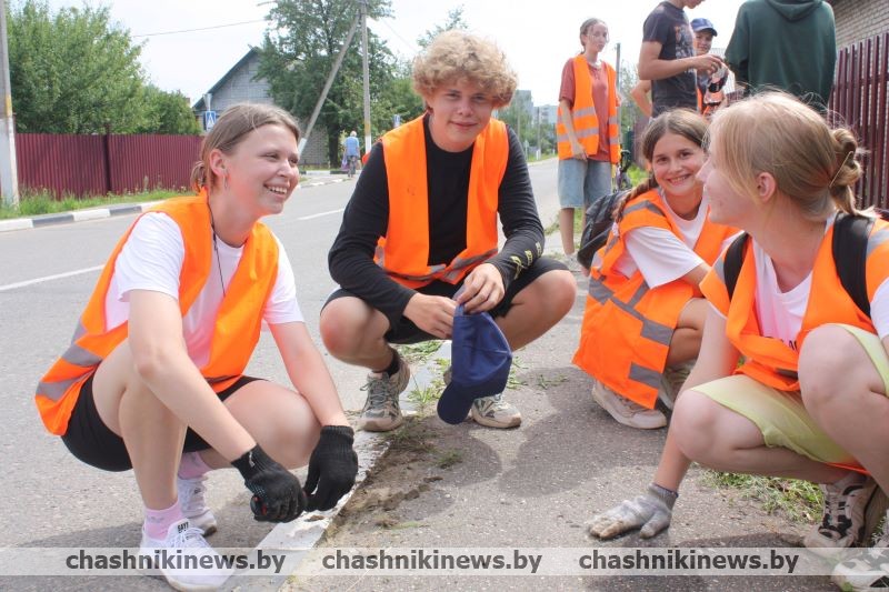 Работаем на улице Строительной, где ребята дружно «разбираются» с сорной растительностью на тротуарах вдоль улицы. Разговариваем с командиром отряда Дарьей Завадко, выпускницей средней школы №1 г. Чашники имени Героя Советского Союза Е. Ф. Ивановского. Сейчас она – студентка Витебского филиала Белорусской государственной академии связи. Еще в школьные годы Дарья отличалась активной гражданской позицией, постоянно была участницей различных мероприятий. Вот и сейчас, во время каникул, решила провести время с пользой.