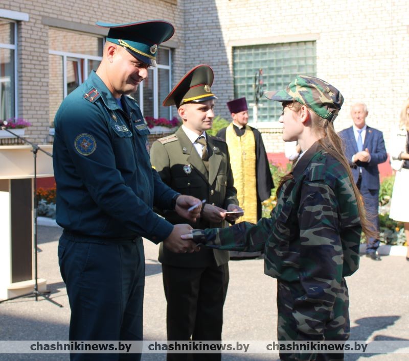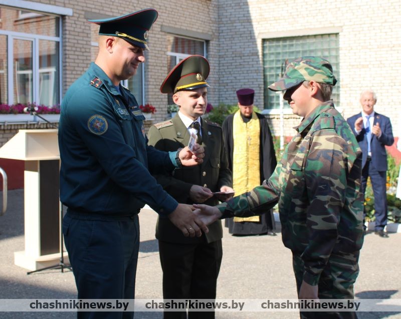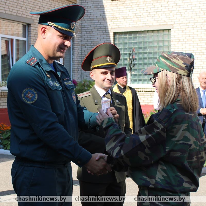 Начальник Чашникского районного отдела по чрезвычайным ситуациям Сергей Малашенко вручил ребятам удостоверения членов военно-патриотического клуба. Получая их, школьники произносили клятву и обещали с честью и достоинством нести звание воспитанника «Прометей».