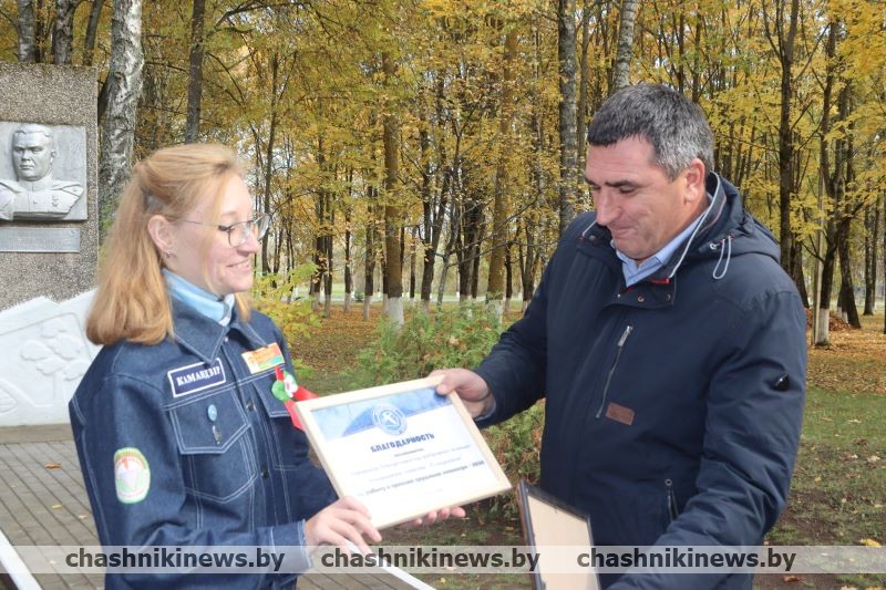 Молодежь Чашниччины знает, что нужно очень много трудиться, нарабатывать опыт, чтобы добиться поставленных целей. Вот и закрытие третьего трудового семестра ребята завершили отличной инициативой: бойцы студотрядовского движения навели порядок и убрали опавшую листву возле памятника Герою Советского Союза Федору Фомичу Дубровскому.