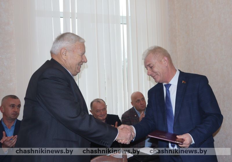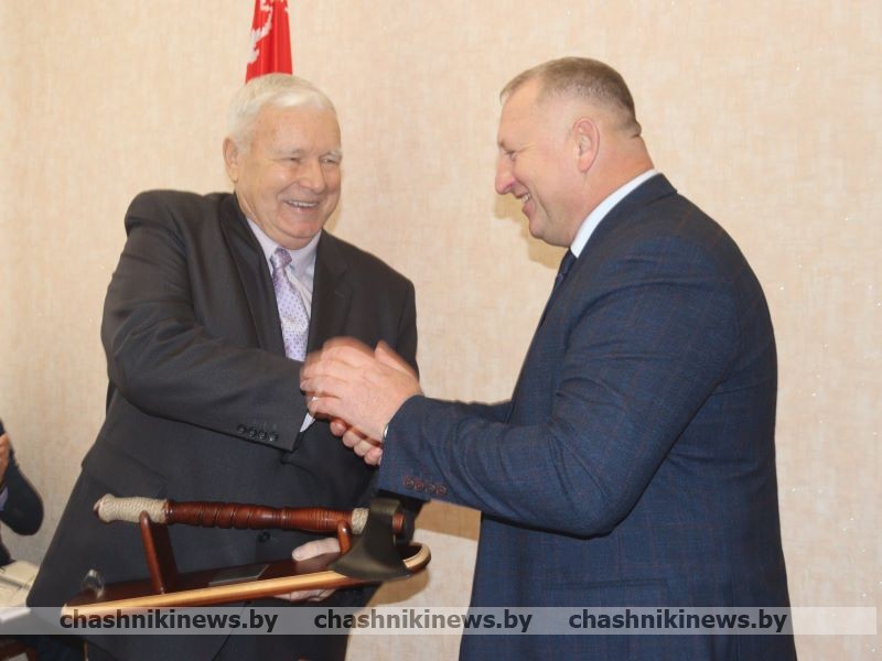 Председатель Чашникского районного Совета депутатов Александр Косов поздравил директора Чашникского филиала Витебского областного унитарного предприятия по обеспечению топливом “Витебскоблтоп” Александра Хацкевича с 70-летним юбилеем.