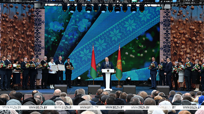 В выступлении на “Дажынках” Александр Лукашенко обратился и к непраздничной теме, с которой начал рабочую поездку. “Страшно подумать даже о тех объемах работ, которые мы должны провести в Витебской области. Но глаза боятся, а руки делают. Хотим мы этого или нет, но, исходя из нашего опыта, мы должны в следующей пятилетке окончательно решить вопрос по Витебской области. Решить в положительном ключе и определиться, что мы здесь еще будем делать, – сказал он. – Нас ждет тяжелейшая работа. Помогать будем тем, кто даст отдачу. Поймите, мы не можем закапывать чужие деньги в землю. Помощь – это мы у кого-то возьмем и вам дадим. Но давать надо тем, кто завтра в два раза отдаст больше, чтобы мы могли вернуть им эти денежные средства. Простая формула, другой жизнь не придумала и не придумает. Взял – отдай”.