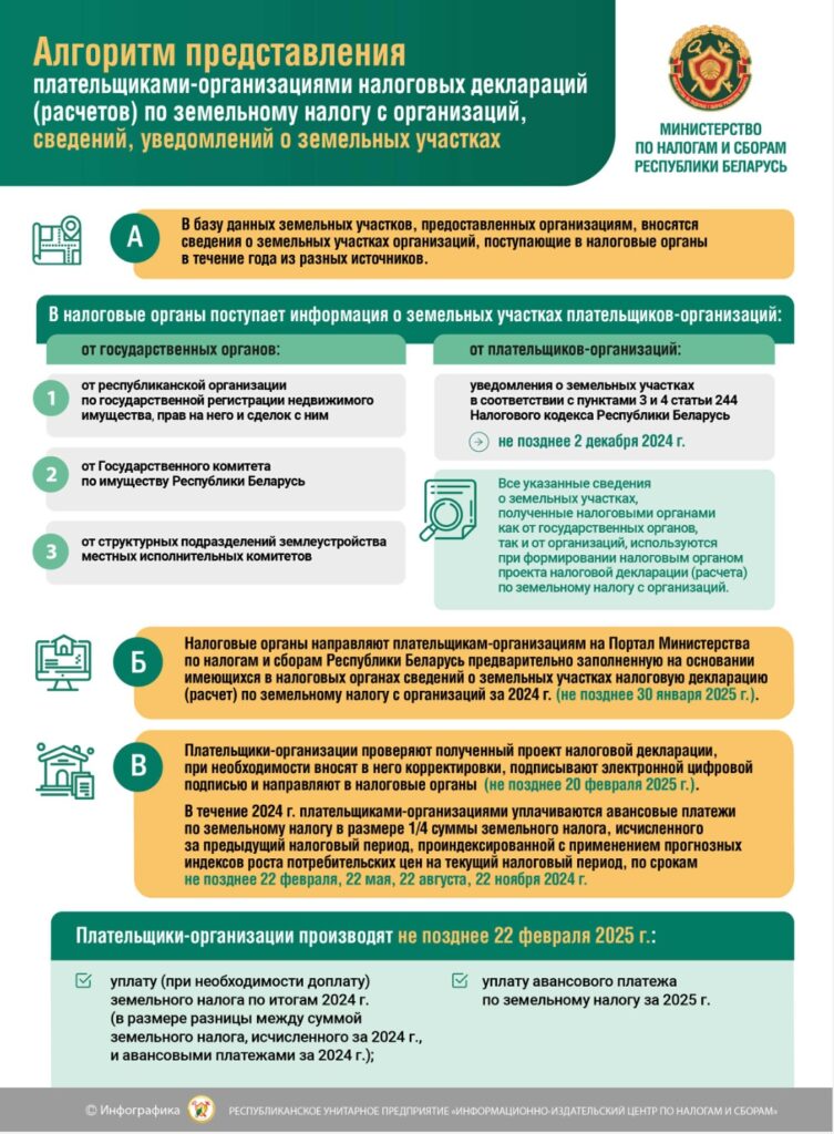 Алгоритм представления плательщиками-организациями налоговых деклараций по земельному налогу
