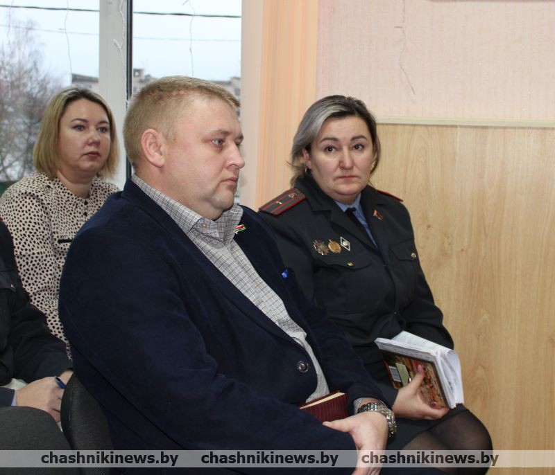 С трудовым коллективом встретились начальник управления Госавтоинспекции Витебского облисполкома, полковник милиции Михаил Дядичкин, начальник отдела идеологической работы и по делам молодежи Алла Баранова и начальник отдела внутренних дел Чашникского райисполкома Александр Усовик.