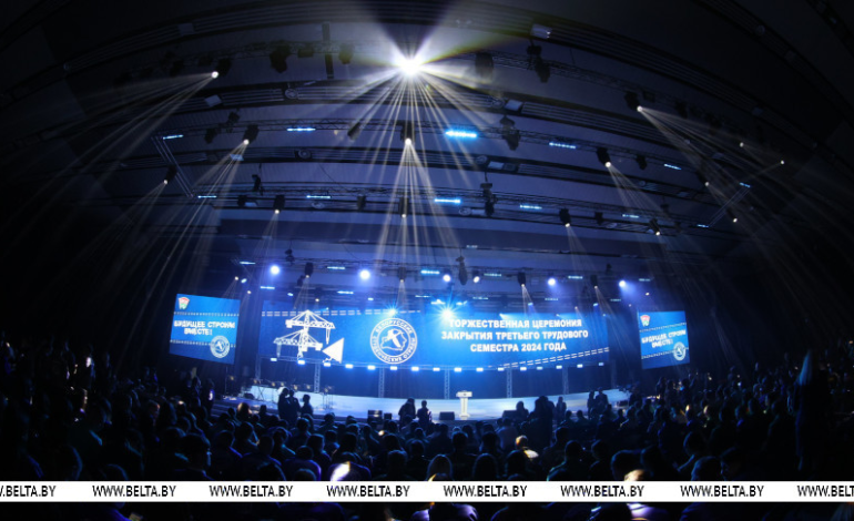 Президент Беларуси Александр Лукашенко 13 декабря вручил переходящее знамя лучшему студотряду 2024 года – строительному отряду “Зодчие” имени П. И. Блохина. Глава государства передал знамя во время торжественной церемонии закрытия третьего трудового семестра 2024 года на Всебелорусском слете студенческих отрядов, передает корреспондент БЕЛТА.
