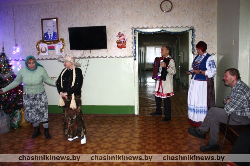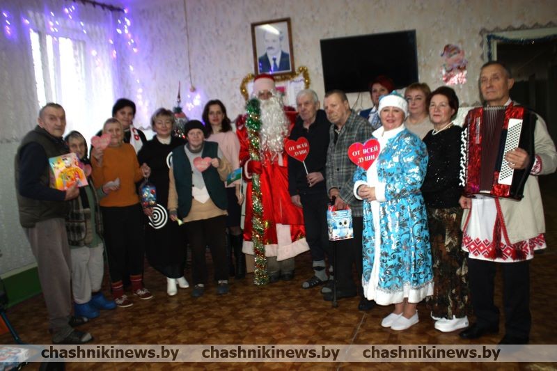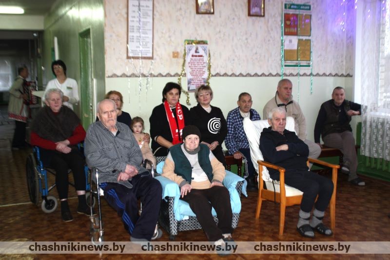 Накануне новогодних и рождественских праздников уже на протяжении многих лет сюда приезжают с подарками гости. В этот раз представители Территориального центра, районной ветеранской организации, профсоюза работников АПК, Белорусской партии и общественного объединения «Белая Русь», сельской администрации прибыли в учреждение, чтобы поздравить пожилых людей, которые, ввиду жизненных обстоятельств, находятся здесь. Многие из находящихся здесь вели активную жизнь, трудились на благо страны и народа. Их вклад не остался незамеченным. Все пациенты БСУ были рады встрече, подаркам, получили массу положительных эмоций.