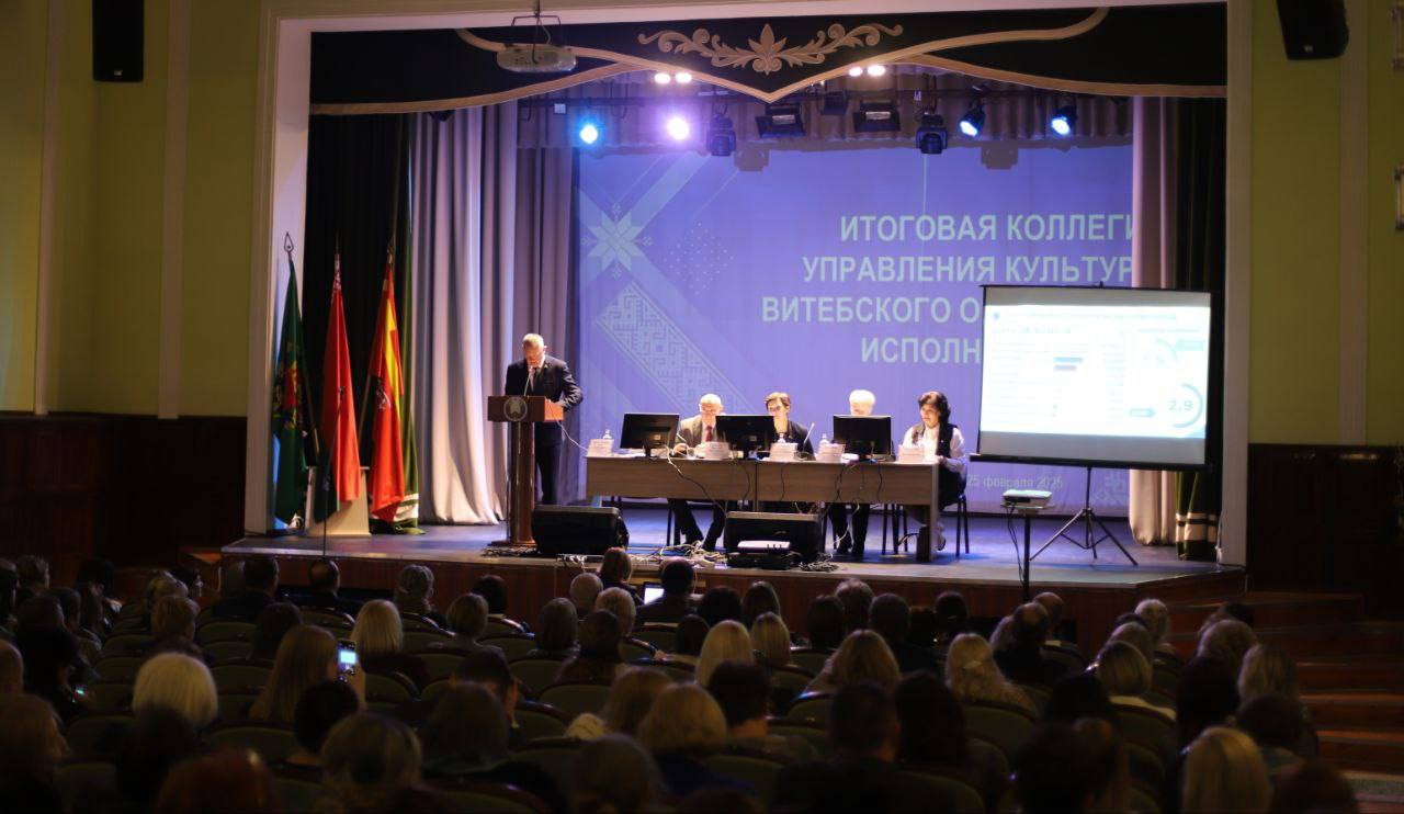 Участие в коллегии принимают начальник отдела образования Министерства культуры Республики Беларусь Марина Юркевич, заместитель председателя облисполкома Вячеслав Дурнов, начальник управления культуры облисполкома Петр Подгурский. Перед присутствующими выступил заместитель председателя Витебского облисполкома Вячеслав Дурнов, который поблагодарил работников сферы культуры и отметил: