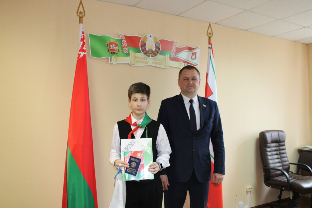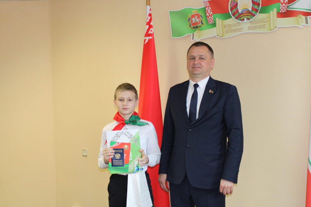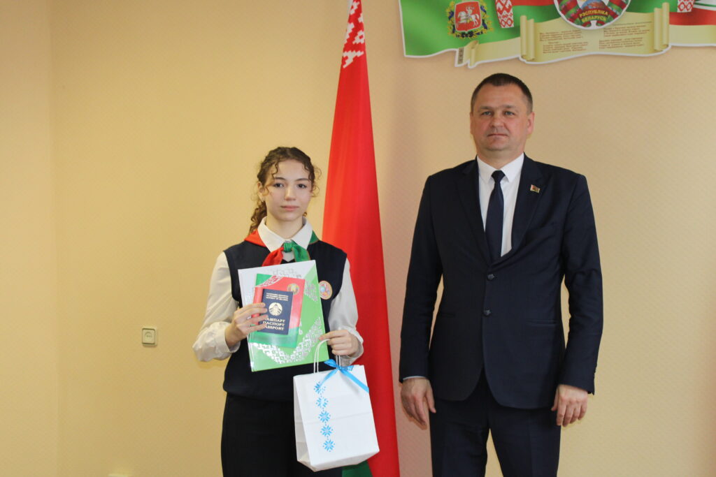 В рамках Всебелорусской патриотической акции «Мы – граждане Беларуси!» в Чашникском райисполкоме председатель Александр Быков в торжественной обстановке вручил паспорта гражданина Республики Беларусь 14 девушкам и юношам – учащимся школ района, добившимся высоких результатов в учебе, спорте и общественной деятельности.
