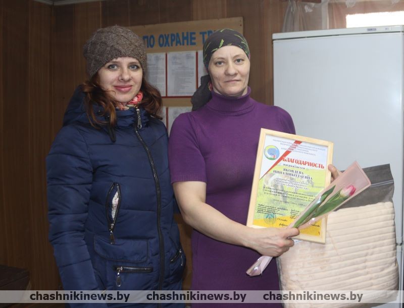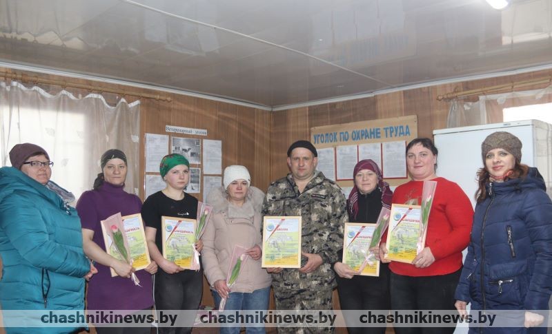 Накануне 8 Марта поздравления и подарки принимали лучшие работники фермы операторы машинного доения фермы: