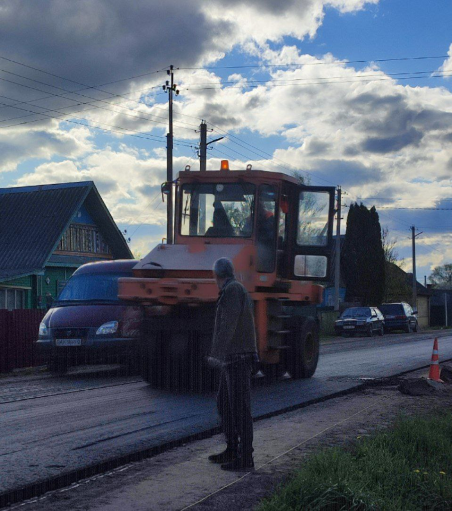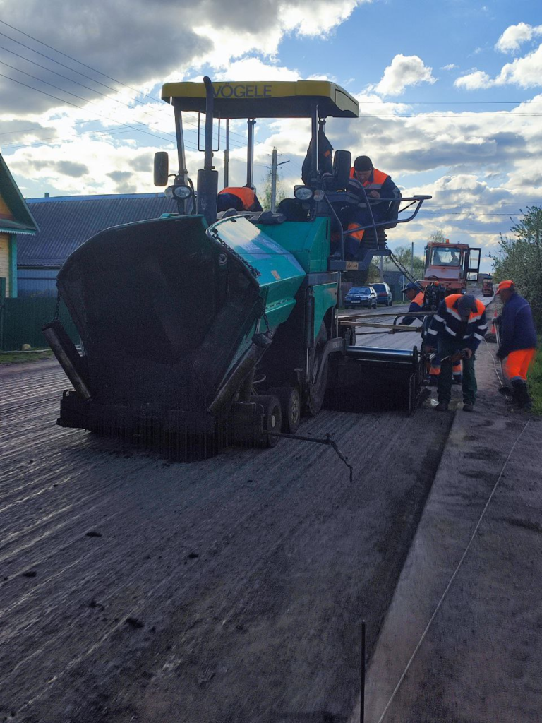 Работники Чашникского филиала ДРСУ №183 РУП «Витебскавтодор» укладывают новое асфальтовое покрытие по улице Чепика в райцентре. В работах задействовано 7 единиц техники.
