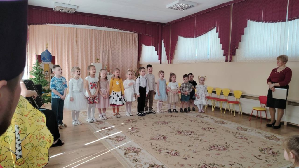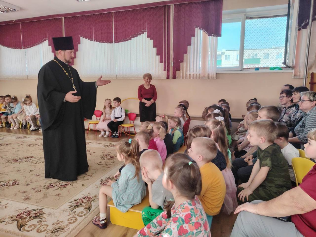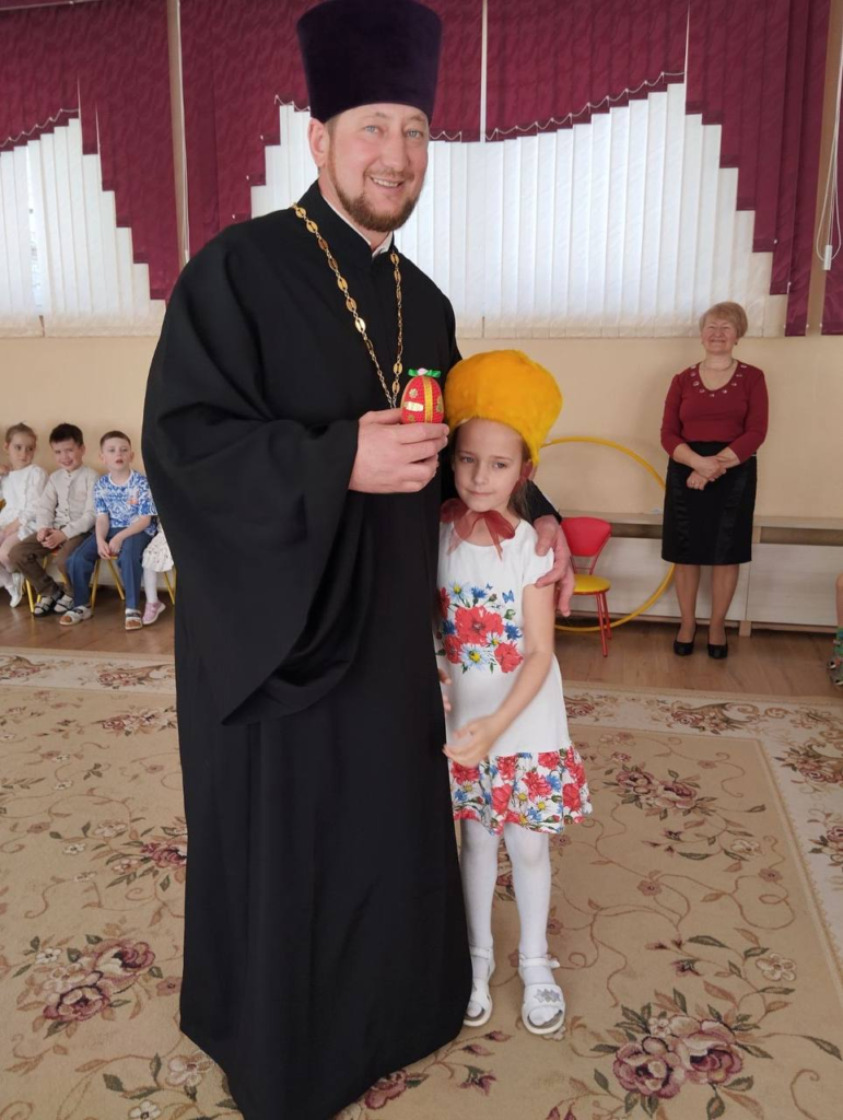 На торжество был приглашён отец Владимир, который принес с собой частицу Благодатного Огня. Он рассказал детям о празднике Пасха, его традициях и значении, а также пожелал всем нести в мир добро и радость, быть милосердными и честными.