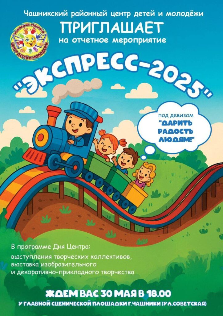 Отчетные мероприятия Чашникского районного центра детей и молодежи под девизом «Дарить радость людям» пройдут на площади города Чашники 30 мая в 18.00.