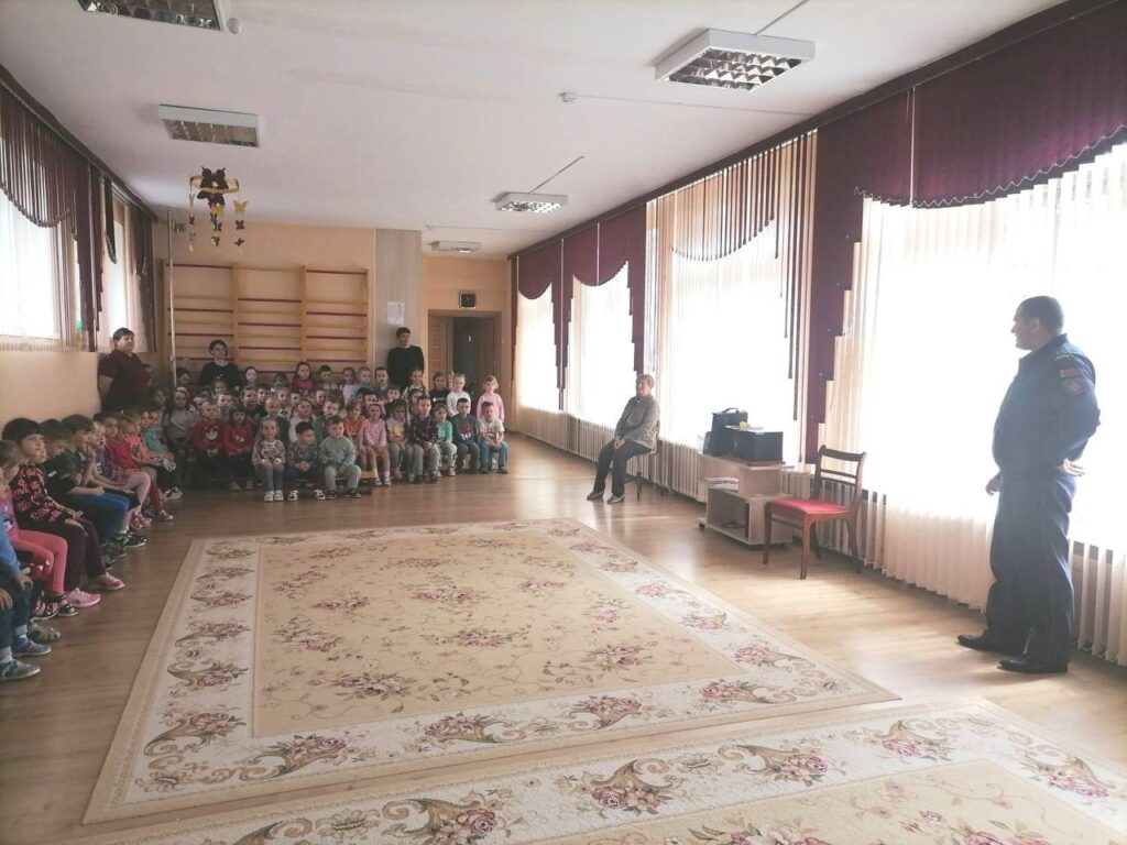 Инспектор провёл с детьми интересную беседу о правилах дорожного движения, о необходимости ношения светоотражающих элементов.