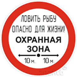 В местах прохождения ВЛЭП через водоемы или вблизи них вывешены (установлены) плакаты: «Ловить рыбу опасно для жизни! Охранная зона 10м!» или аналогичные (в зависимости от класса напряжения). Охранной зоной ВЛЭП является зона, расположенная по обе стороны от крайних ее проводов, в виде участка земли и воздушного пространства, ограниченная вертикальными плоскостями на расстоянии: 2 м – при напряжении до 1 000 Вольт; 10м – при напряжении 6 000-10 000 Вольт; 15 м – при напряжении 20 000 ̶ 35 000 Вольт; 20 м – при напряжении 110 000 Вольт; 25 м – при напряжении 220 000 Вольт; 30 м – при напряжении 330 000 Вольт; 40 м – при напряжении 750 000 Вольт.