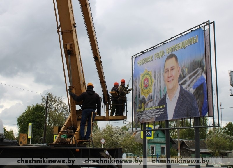 В Чашниках установили баннер с лауреатом почетного звания «Человек года Витебщины» Алексеем Мандриком