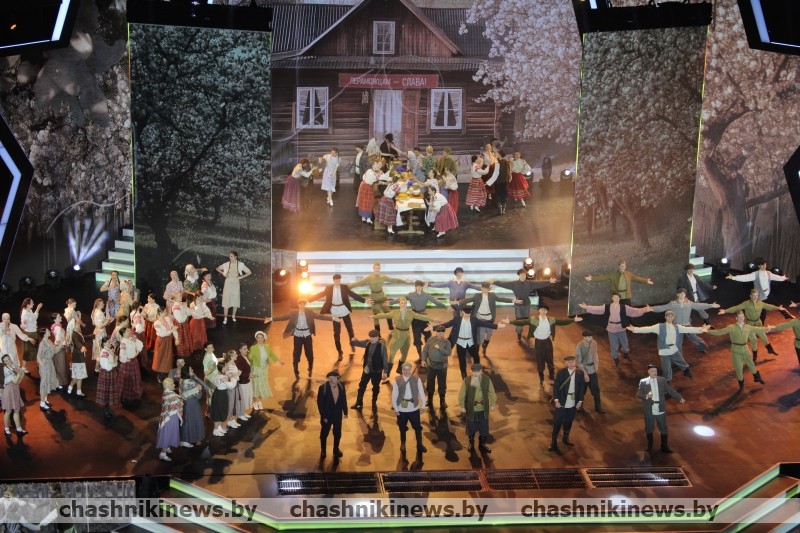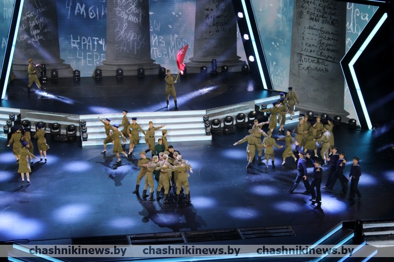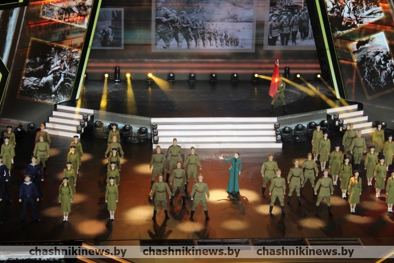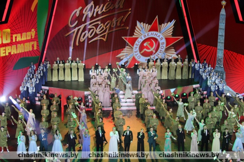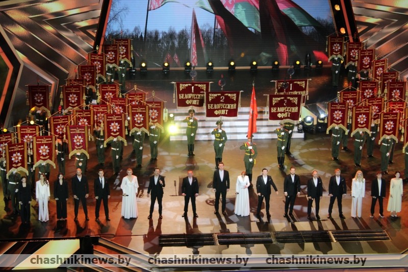 Торжественное собрание продолжила яркая концертная программа в формате современной киноповести. Красной нитью на протяжении всего действия проходила главная тема – сохранение исторической памяти о страшном военном лихолетье и героизме людей, принесших нам Великую Победу. Легендарные советские и белорусские композиции исполняли ведущие коллективы и артисты республики. Праздничное мероприятие оставило у всех присутствующих незабываемые эмоции. Зрительный зал неоднократно вставал, выражая глубокое уважение героическому подвигу нашего народа.