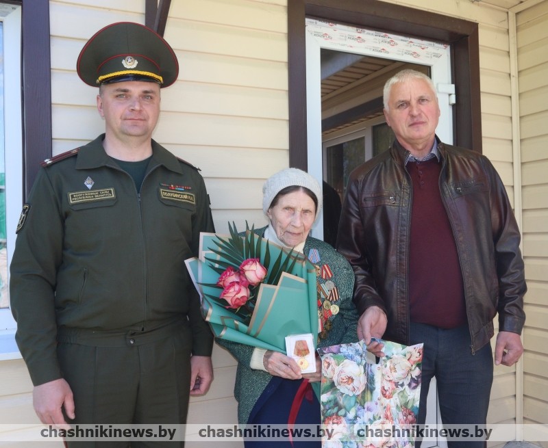 В преддверии Дня Победы в Чашникском районе ветеранам Великой Отечественной войны вручили юбилейные медали «80 лет Победы в Великой Отечественной войне 1941–1945 годов», преподнесли им цветы и подарки.